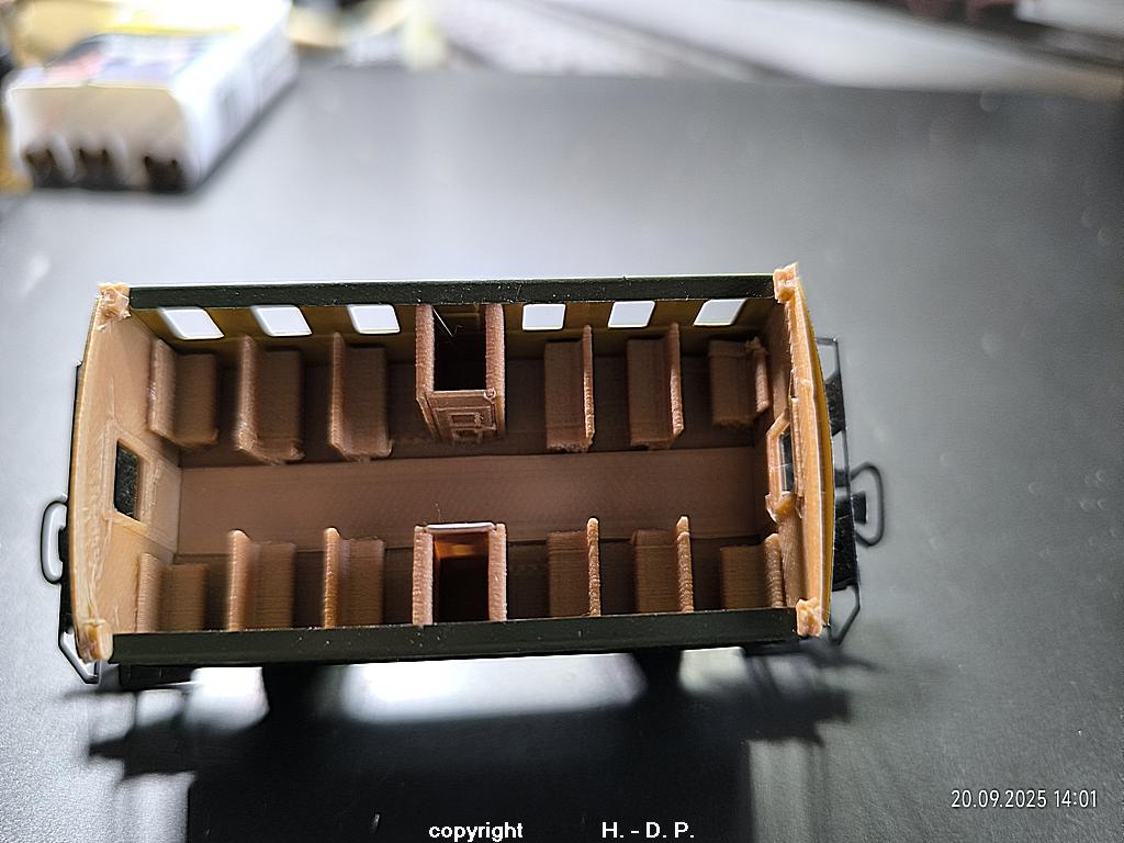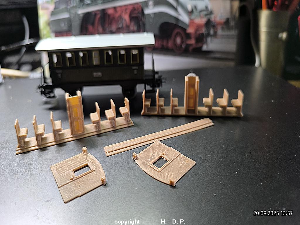 gestern bei meinem Stammtisch bot einer der Mitgründer des MIST 47 Inneneinrichtungen im 3 D Druck für Märklin Blech Personenwagen an und zwar für die 346er Schürzenwagen, 4000 und 4040 an. Ob r noch weiter gefertigt hat kann ich nicht sagen. Ich habe für die Einrichtung des 4040 ganze 5 € gezahlt, es kann aber sein das dieser Preis nur für den MIST 47 gültig ist. Die Preise der anderen Einrichtungen habe ich jetzt nicht im Kopf.