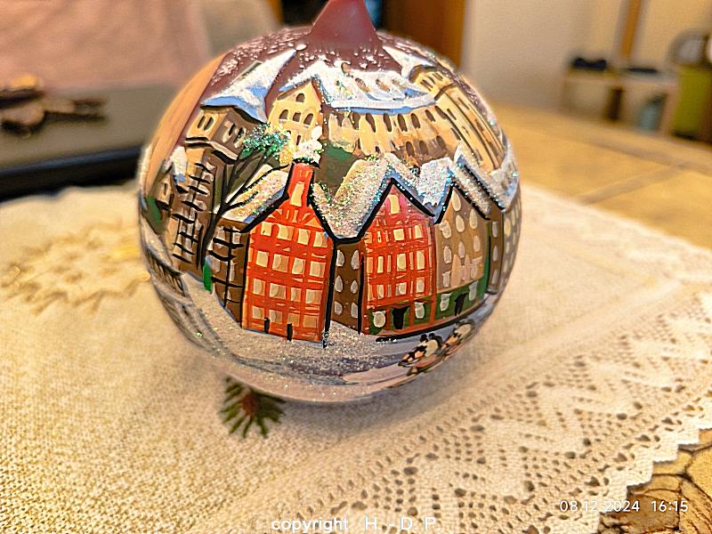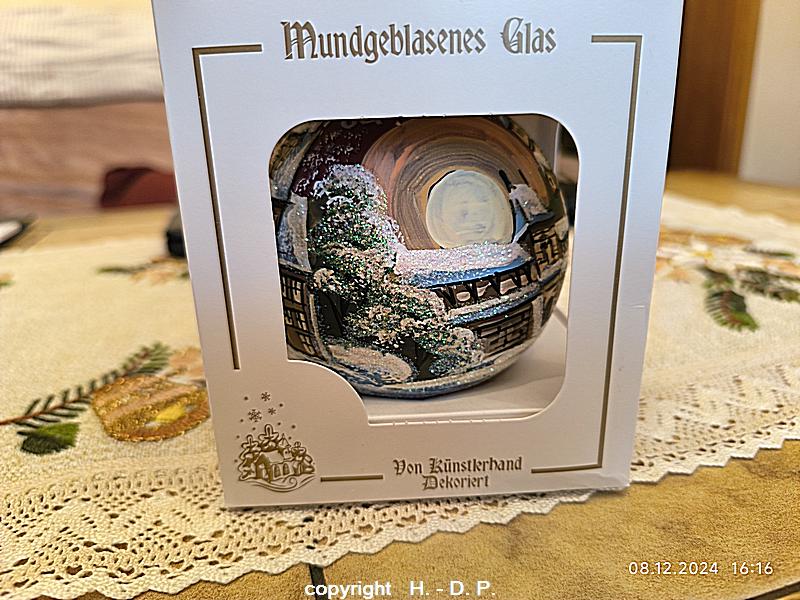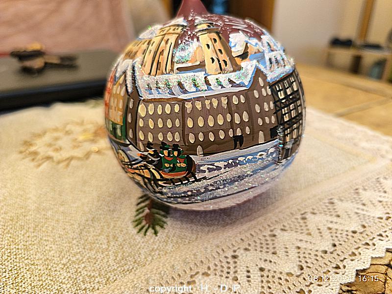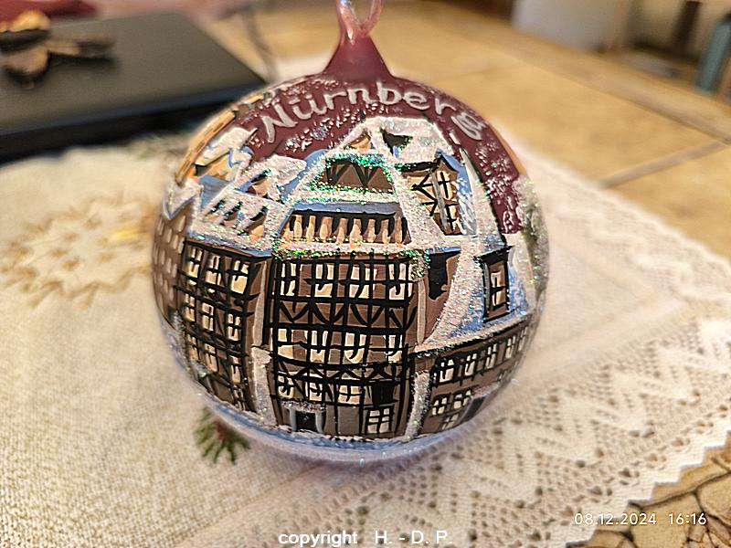 Ich selber bin dann bis zum Hbf weiter gefahren und von dort aus mit einem Taxi zum Christkindlesmarkt. Leider war das Wetter grottenschlecht, denn es regnete Bindfäden und meine Jacke war nach kurzer Zeit schon durchnass, so das mein Besuch des Marktes auch recht kurz ausfiel und es aus dem Grund auch nur wenige Bilder gibt. Aber eine neue Kugel für meinen Weihnachtsbaum habe ich doch bekommen, es ist jett die 17. insgesamt.