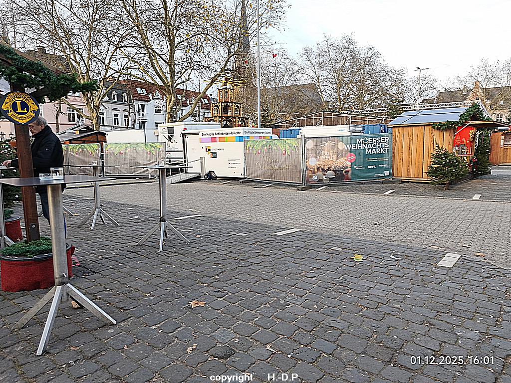 Was ist nur aus einem einst wunderschönen kleinen Weihnachtsmarkt geworden ? Wo sind die Kugelbläser, die Schwibbögen, die Holzkunst aus dem Erzgebirge, die Lebkuchen und Spekulatius Stände, die Kerzenstände geblieben ? Kann es vielleicht sein das die Stadt die Standgebühren so drastisch erhöht hat das es sich für die Betreiber der Stände nicht mehr lohnt ? Es ist eine Schande was aus diesem Markt geworden ist, nämlich eine reine Fress - und Saufmeile und das hat nichts mit Weihnachten zu tun. Wer also einen richtigen Weihnachtsmarkt besuchen möchte, der soll einen ganz großen Bogen um Moers machen.