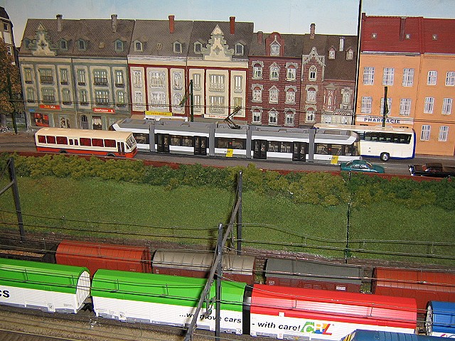 Jetzt möchte ich Euch zwei Anlagen zeigen die nach meiner Meinung, total aus dem Rahmen gefallen sind und ich meine auf solche Anlagen können wir auf Ausstellungen gut verzichten. Die erste Anlage ist eine LGB Anlage. Sie bestand aus 2 Ovalen und in der Mitte aus einem weißen Betttuch das wohl einen verschneiten Berg darstellen sollte. Die zweite Anlage, ja welche Spurweite die hatte weiß ich einfach nicht, da ich nur 1,70 m groß bin konnte ich da nichts drauf erkennen. Die Anlagenoberkante war genau so hoch wie meine Nase .- nicht das Ihr meint ich trage meine Nase sehr hoch - nein diese Anlage war unmöglich hoch, so das die Betreiber auf kleinen Leitern stehen mußten wenn sie etwas, z.B. aufgleisen wollten. Das so etwas für Kinder, die ja unsere Zukunft sind, unmöglich istm dürfte wohl jedem klar sein.