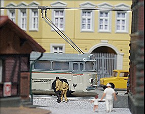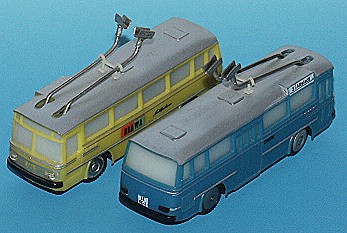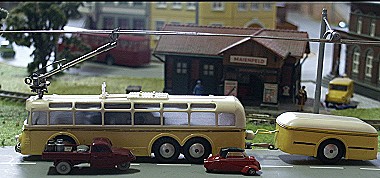 ![]() der Obus in Spur N links ein Handmuster, rechts das Serienmodell |